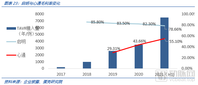 从结果看,中国TAVR市场推广确实进入了快车道。2017年5月启明完成VenusA产品注册后,开始加速推广TAVR进院。2019和2021年,心通、沛嘉TAVR产品上市进一步加速了覆盖进程。
