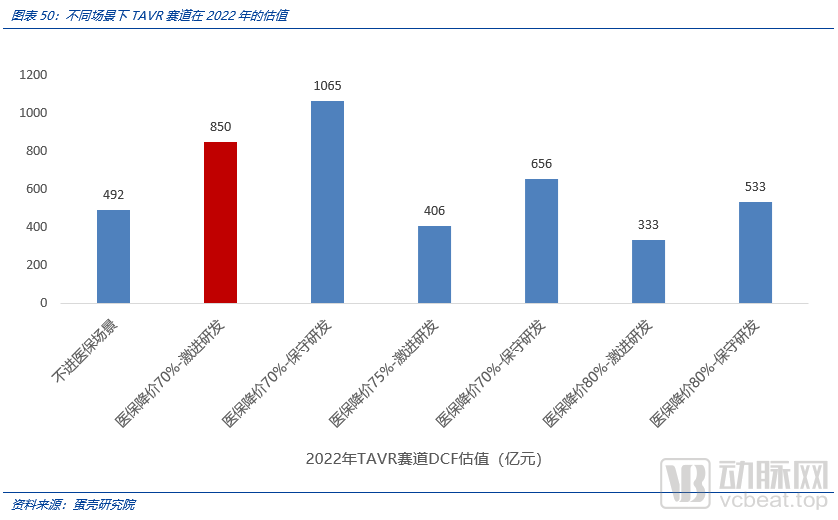 我们基于DCF模型,对于TAVR赛道在2022年的估值为850亿元人民币。
