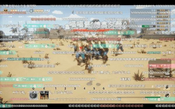 顺着“直播促进交互”这个思路,今年市场还出现了让直播观众刷弹幕和小礼物,改变游戏直播结果的操作。在游戏中,主播率先到达战场,玩家只要在直播间里发弹幕,游戏里就会有一个同名AI出现去“追杀”主播。如果弹幕足够多,主播将会被茫茫人海“追杀”,“万人同玩”的直播氛围拉满,据悉,这场直播取得当日全网弹幕量第一的成绩,同时引起了其它产品的关注。