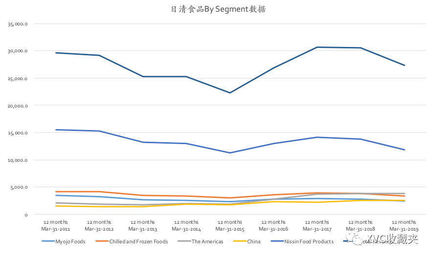 为了回答这个问题,我们要先知道PB商品在抢占谁的市场份额。在日本市场,PB商品的最大竞争对手应该是方便速食和冷冻预制菜知名品牌商日清,所以我去查了日清近几年的财报数据。