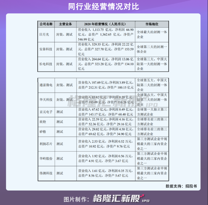 在市场增量空间背景下,伟测科技业绩呈现稳健增长态势。2018年至2020年,其实现营收分别为4369万元、7793万元、1.61亿元;同期净利润分别为641万元、1128万元、3485万元。但是与同行业公司对比,伟测科技因业务开展时间较短,营收和净利润规模处于低位。
