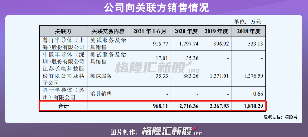 令人关注的是,因公司股东深圳南海分别持有客户普冉半导体10.71%的股份和客户中微半导体4.40%的股份,且同时委派陈凯担任伟测科技、普冉半导体、中微半导体三家公司董事,伟测科技与上述两家客户存在关联销售。报告期各期末,公司向关联方销售金额分别为1810万元、2368万元、2716万元、968万元。