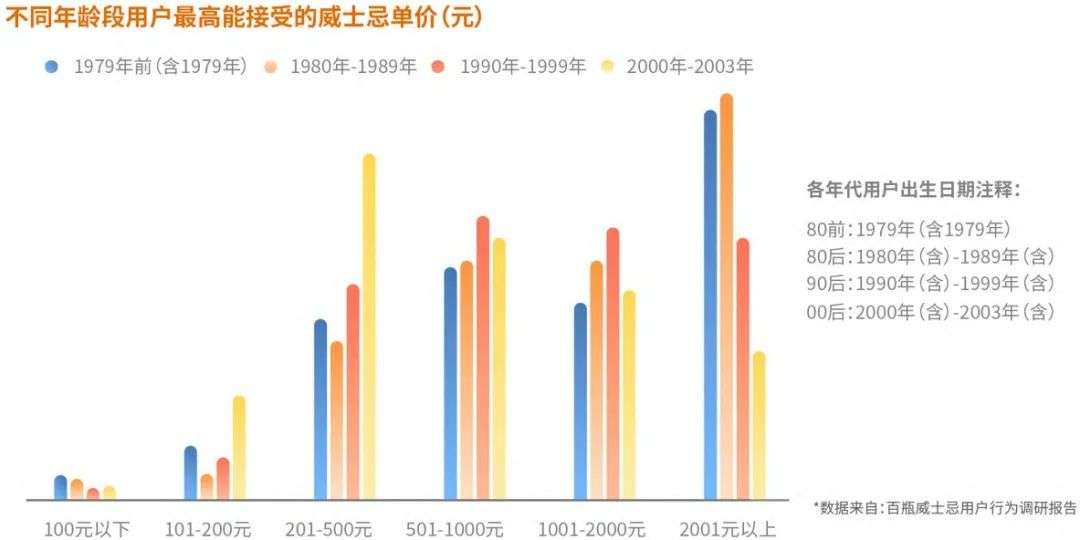 不同代际用户最高能接受的威士忌单价