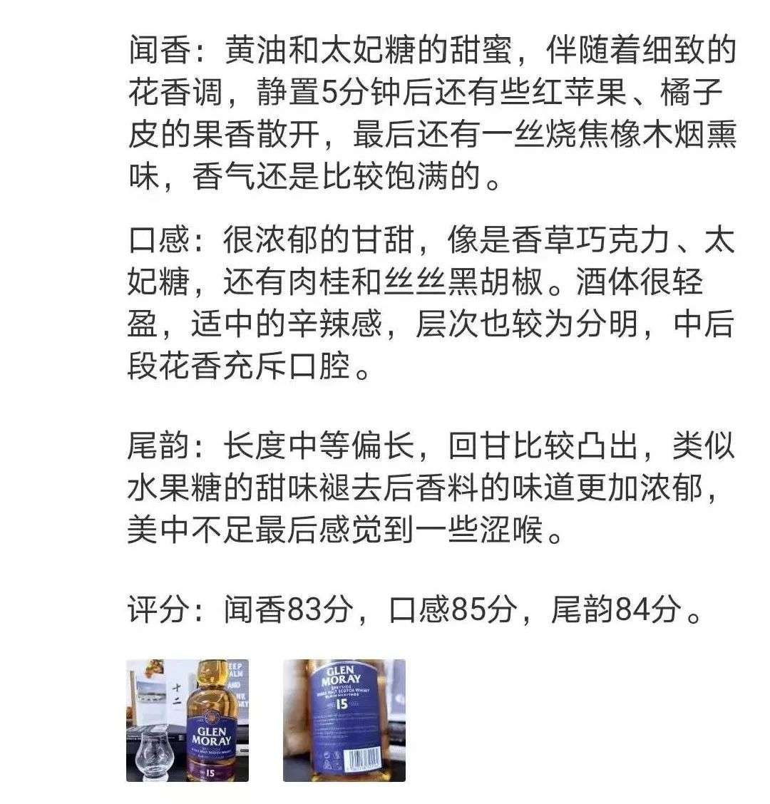 上文提到的,是一位用户在百瓶“众测馆”对格兰莫雷15年单一麦芽威士忌的测评。