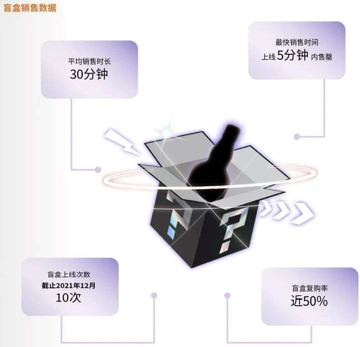 百瓶自2020年双11上线盲盒玩法后,又陆续推出了10批盲盒威士忌。每一批都大约在30分钟内售罄,可见,这种玩法多么受欢迎。