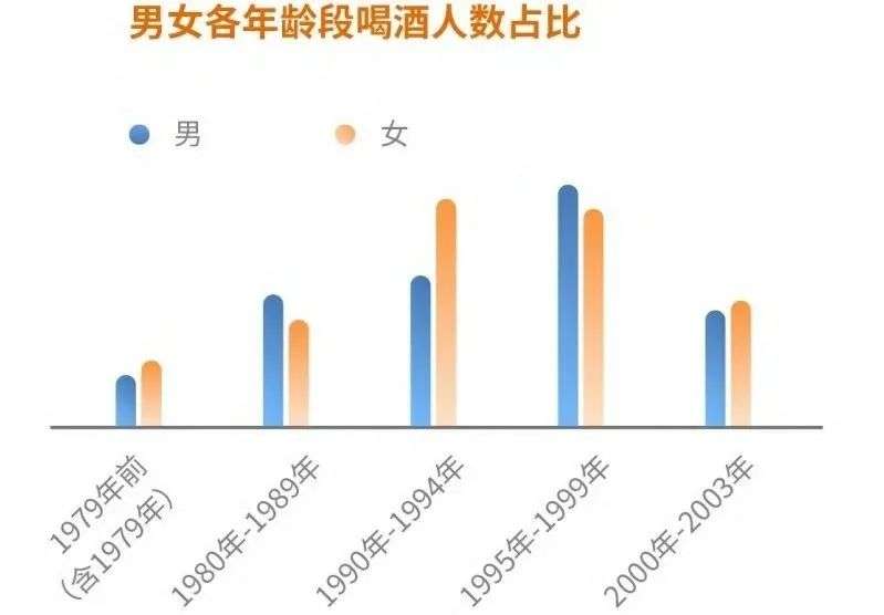 各年龄段喝酒人数的男女比例