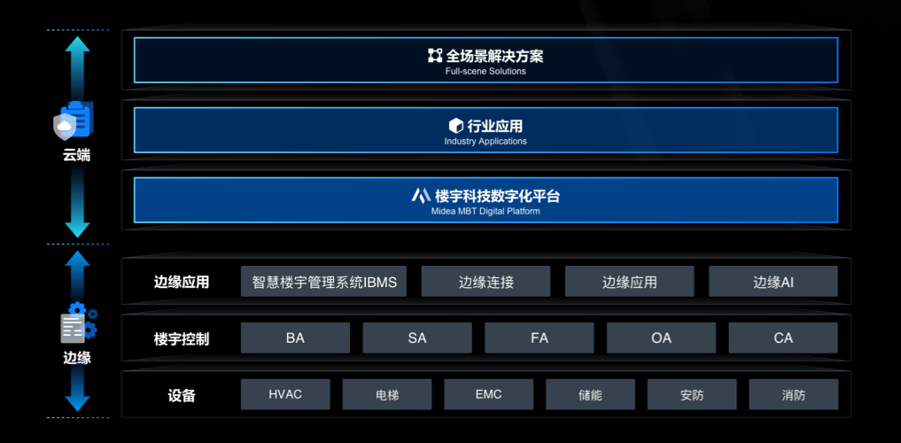 美的楼宇科技数字化平台iBuilding以全场景智能连接、底层数据融合、全业务赋能为目标构建出面向楼宇生态的完整端到端解决方案。