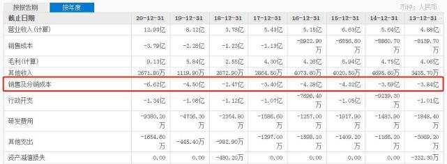 公司的销售及分销成本近十年来持续加码,2020年达到6.62亿元,较2019年的4.5亿元提高不少。