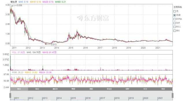 只可惜“上市即巅峰”——股价在2010年末摸高到3.8港元后,就开启了漫漫下跌路,如今股价仅有0.168港元,公司市值约合2.74亿港元。