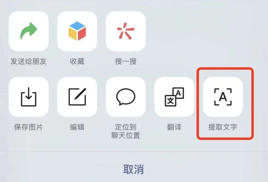 收到带有文字的照片后,如果有想提取的内容,先长按照片,此时,页面下方会弹出一个编辑栏。选择其中的“提取文字”功能,点击一下就能自动提取图片中的所有文字了。照片上的文字会出现在一个个淡绿色的框中,还可以编辑这些文字,选择部分文字复制粘贴或者全选等,提取出的文字可以一键转发、复制和收藏。如果照片上是印刷体文字,识别度准确性较高,但如果是手写的字,还需要加以甄别。