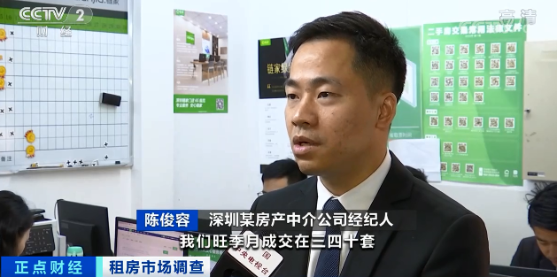 深圳某房产中介公司经纪人 陈俊容:我们门店的成交有明显下滑,旺季月成交在三四十套,现在淡季的成交不到十套。