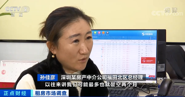 深圳某房产中介公司福田北区总经理 孙佳彦:以往来讲我们可能最多也就是空两个月,今年空半年以上的房子,占目前市场放盘量的40%到50%,尤其是像我们中心区的房子。