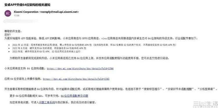 正因如此,除了小米已经开始通过各种各样的渠道,督促用户尽可能使用64位应用之外。实际上早在2021年4月,包括小米应用商店、OPPO应用商店、vivo应用商店、腾讯应用宝和百度手机助手在内的国内几大主流安卓应用商店,就曾联合宣布了推进64位架构升级的计划。