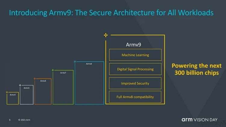 这是什么概念呢?要知道虽然ARM几乎每年都会推出新的CPU架构设计,但底层指令集的更新周期却要长得多。举例而言,当前主流64位移动应用所使用的ARM v8指令集,其实已经是10年前(2012年)的产物了,而对应32位代码的ARM v7指令集,则更是要追溯到17年之前(2005年)、也就是奔腾4处理器的年代。