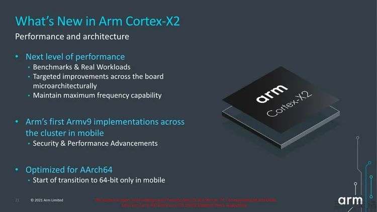 第一,此次Cortex-X2超大核与Cortex-A510小核都只能支持ARM v9指令集,同时向下兼容ARM v8指令集。也就是说要想充分发挥它们的性能,就需要开发者尽快针对ARM v9进行优化才行。