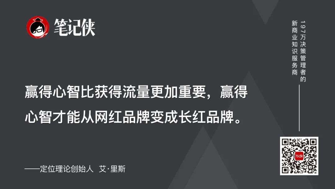 但从长远来看,企业必须建立消费者的心智,赢得心智比获得流量更加重要,赢得心智才能从网红品牌变成长红品牌。