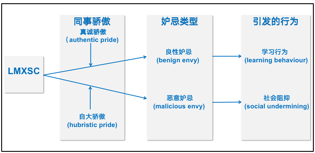 真诚骄傲是指一个人把自身成就归因于“内部的,不稳定的,可控的”原因。例如,我成功是因为我努力工作。当与领导关系好的员工表现出谦虚真诚的行为时,会让那些与领导关系差的员工感知到他与领导的良好关系是通过自身努力获得的,其他人也可以做到。因此,他们相信,自己也有机会与领导建立更好的关系,从而激发良性妒忌。