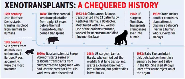早在1997年,一位印度医生Baruah就把一颗猪心脏移植到了一名32岁的男子身上,并成功存活了7天。