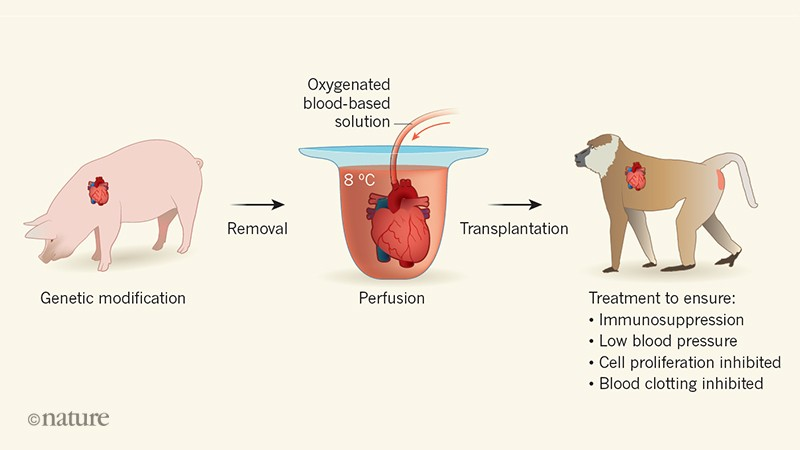2018年12月,Nature发布了一项轰动整个器官移植界的研究,通过基因改造过的猪心脏,成功移植到了狒狒体内。