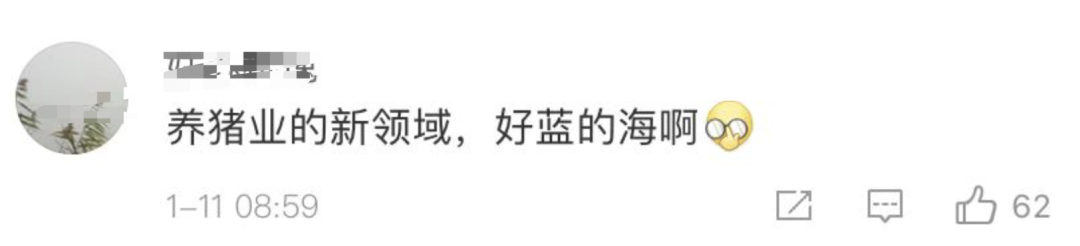 还有网友调侃到,「养猪业的新领域,好蓝的海啊。」