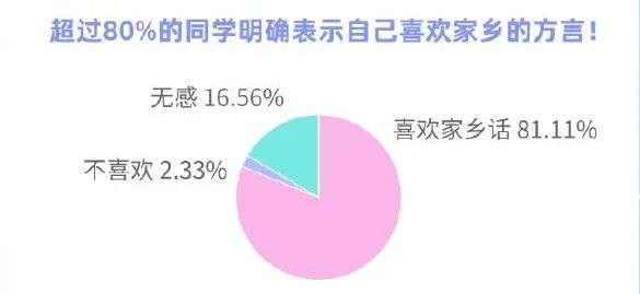 随着方言梗的流行,更多的年轻人开始喜欢、运用方言。中青校媒的调查显示,超过80%的同学表示喜欢自己家乡的方言,76.2%的人会不自觉向身边人安利自己的家乡话。