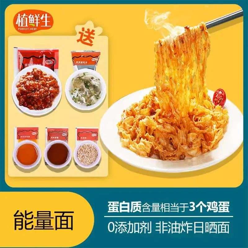 再比如植鲜生推出的植物肉酱拌面,同样是植物肉品牌,却从方便食品赛道切入,本质上是方便速食+植物肉,这样就能吸引一批年轻消费者,他们首先关注的是方便速食这个品类,继而才会发现这个居然是植物肉酱做的,激发了其尝鲜的兴趣,最后回到方便速食的评判标准中;是否好吃,是否够方便,价格是否在其能够接受的范围内(这里消费者会通过方便速食的价格区间进行横向对比)。