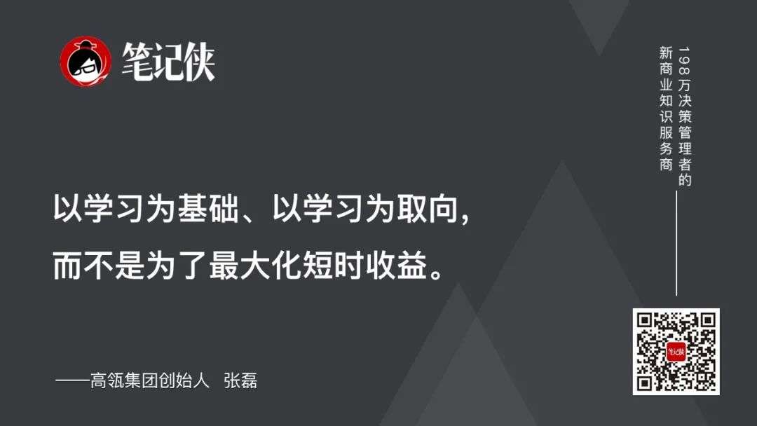 第一,要以学习为基础、以学习为取向,而不是为了最大化短时收益。