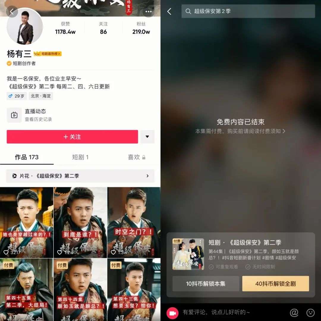 以抖音上线的《超级保安》第二季为例,前40集均可免费观看,只有最后5集需要付费观看,单集收费1元,花4元可以解锁5集。