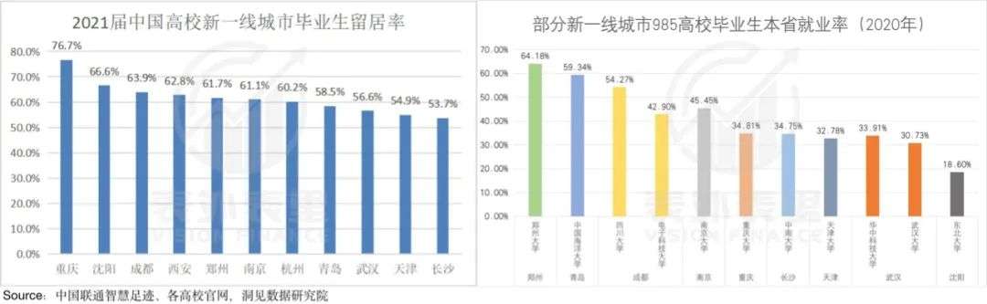 2021年,武汉高校毕业生本市留居率仅有56.6%,在新一线城市中排名倒数第三。