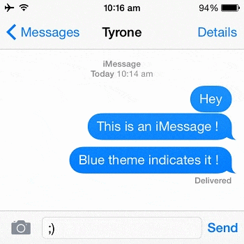 iMessage 可以传输文档、图像、视频等内容,功能比传统短信要丰富得多,为了与传统的 SMS 短信做出区分,苹果将 iMessage 的气泡框设计成了蓝色。在一年后的发布会上,刚上任 CEO 的库克宣布通过 iMessage 发送的消息就已超过三千亿条。