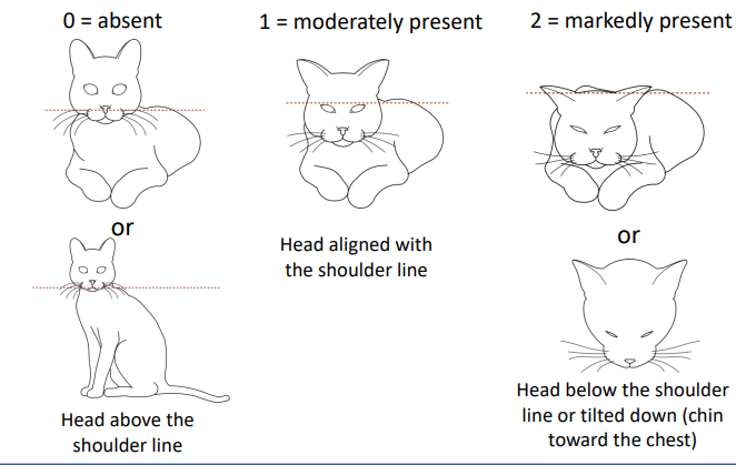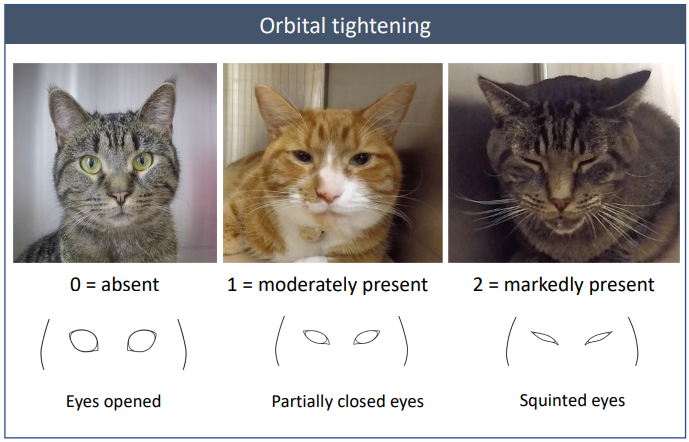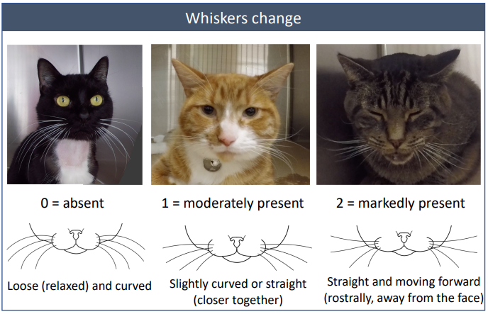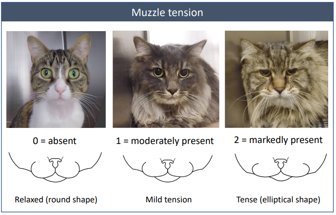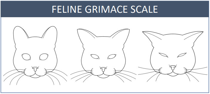 [5]Evangelista MC, Watanabe R, Leung VS, Monteiro BP, O’Toole E, Pang DS, et al. Facial expressions of pain in cats: the development and validation of a Feline Grimace Scale. Scientific reports. 2019;9(1):1-11.