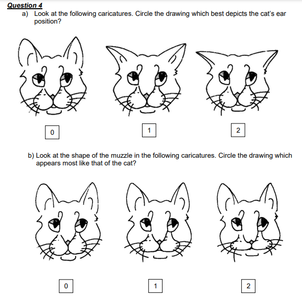 到了最近几年,研究者才将表情纳入到评估猫疼痛的系统中。2017年,格拉斯哥猫用疼痛量表以灵魂画作的方式加入了对猫耳朵和口鼻部的关注[4]。