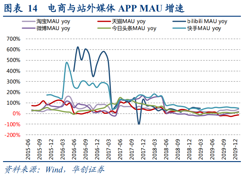 红色线(天猫)一路向下,后期被超越。图表来源:华创证券