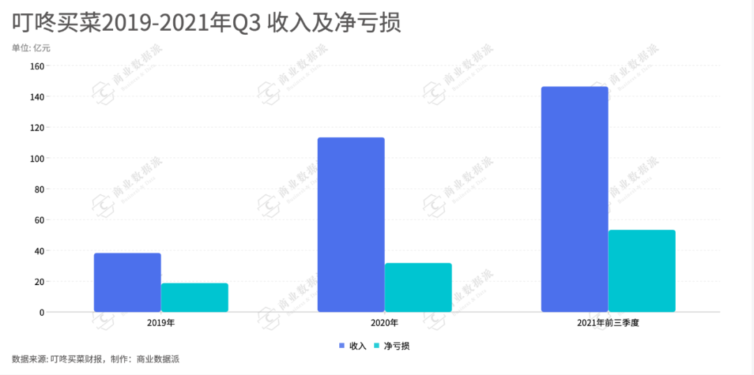 我们此前在《两大生鲜电商冲击上市,前置仓没有赢家》中就提到,每建一个新的前置仓都需要对仓储、运输、人工等各个环节做一次投入,因此采用了前置仓模式的叮咚买菜收入和亏损几乎是同倍增长。