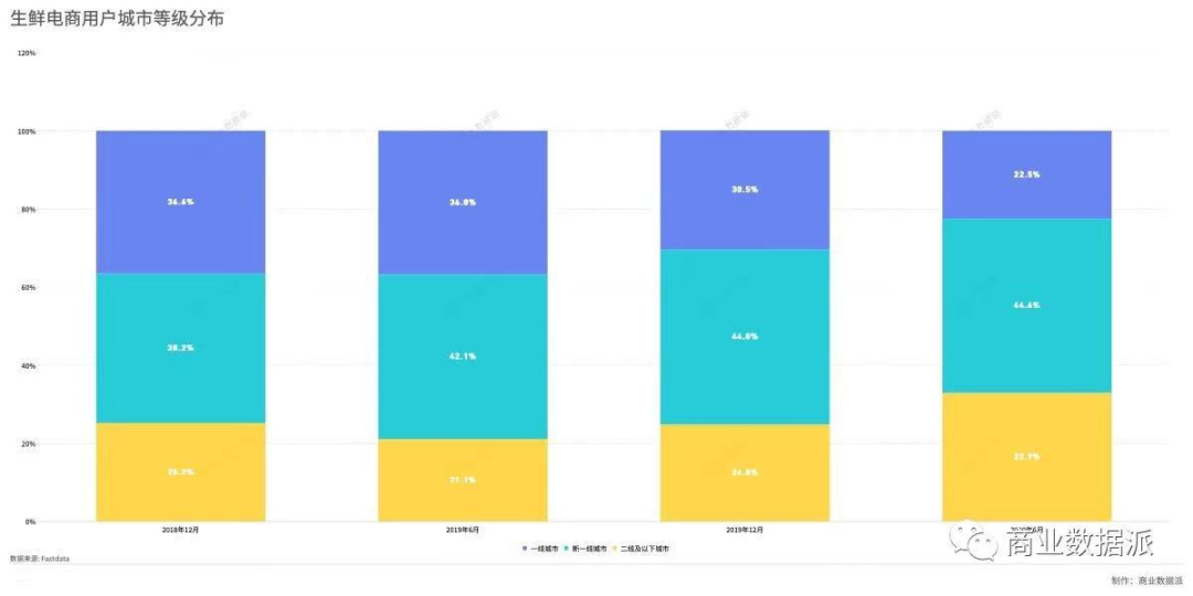 由此可见,在一线及新一线城市中,生鲜电商的用户增长已经遇到瓶颈,短时间内无法迅速扩大用户规模,生鲜电商在下沉市场中的表现也不尽人意。
