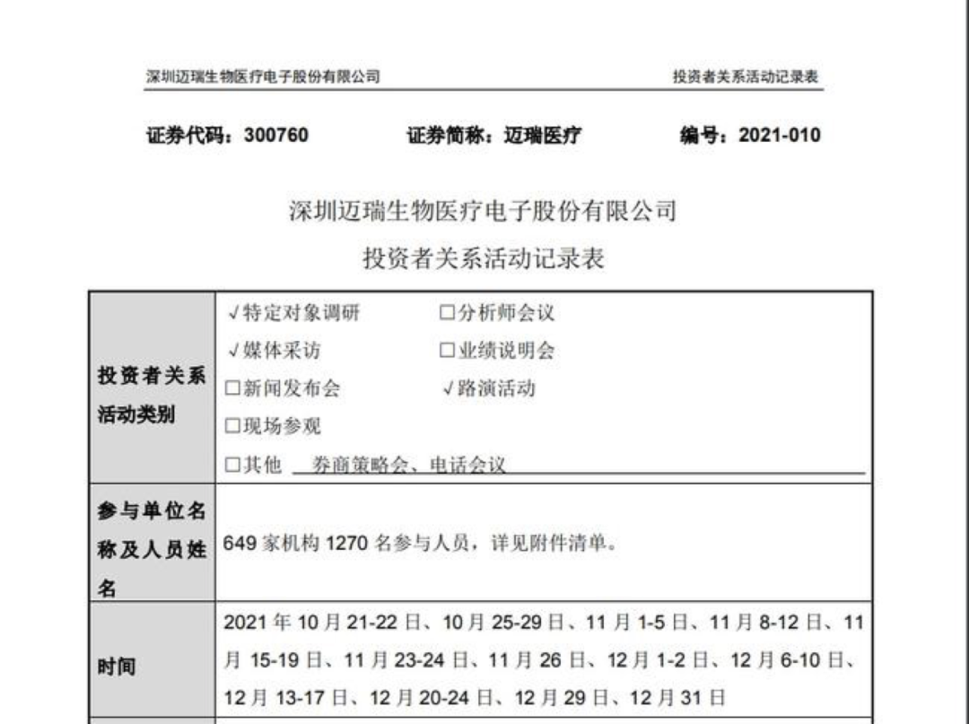 几天前的1月4日,迈瑞医疗发布公告称,两个月中,华兴资本、华银基金、君和资本等649家机构1270人参加了迈瑞医疗调研和会议。这个数字,又是排名A股榜首。