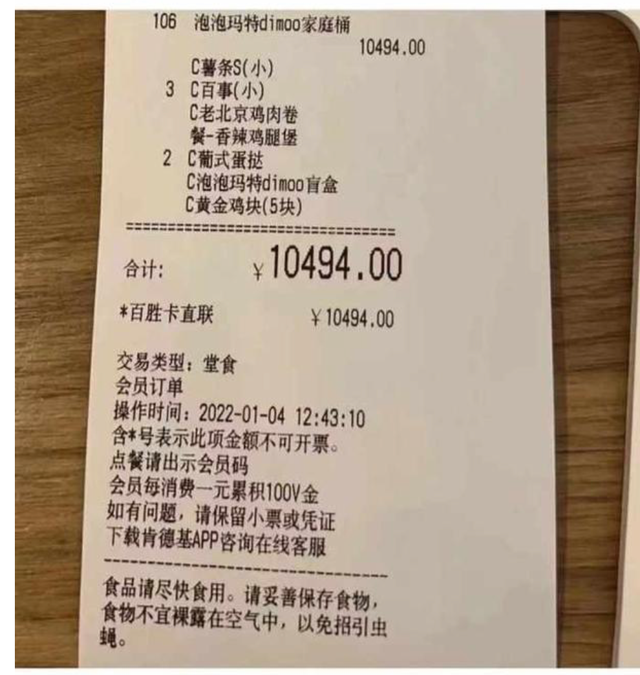 一次性买6份套餐,是为了尽可能避免抽到重复的盲盒,从而增加抽到隐藏款的可能性。在社交平台上,有博主晒出天价账单——花费10494元,买了106份套餐。
