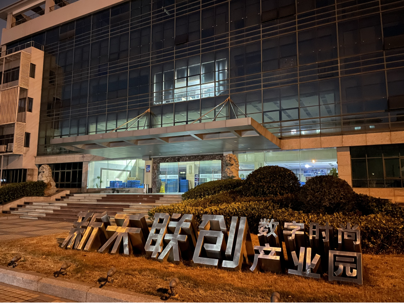 晚上十点半,九堡的新禾联创产业园临街的办公楼虽然熄灯了,但是园区里面每栋楼都有不少直播间亮着灯。走在园区里,能清楚听到主播在镜头前大声叫卖的声音。