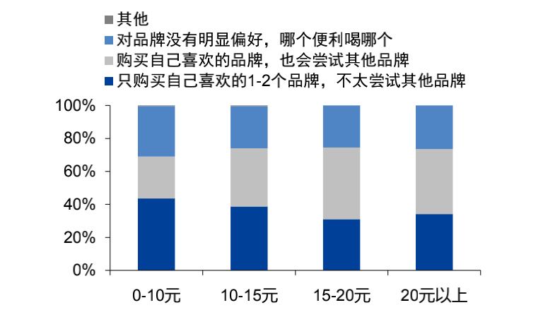 现制茶饮各个价格带品牌忠诚度