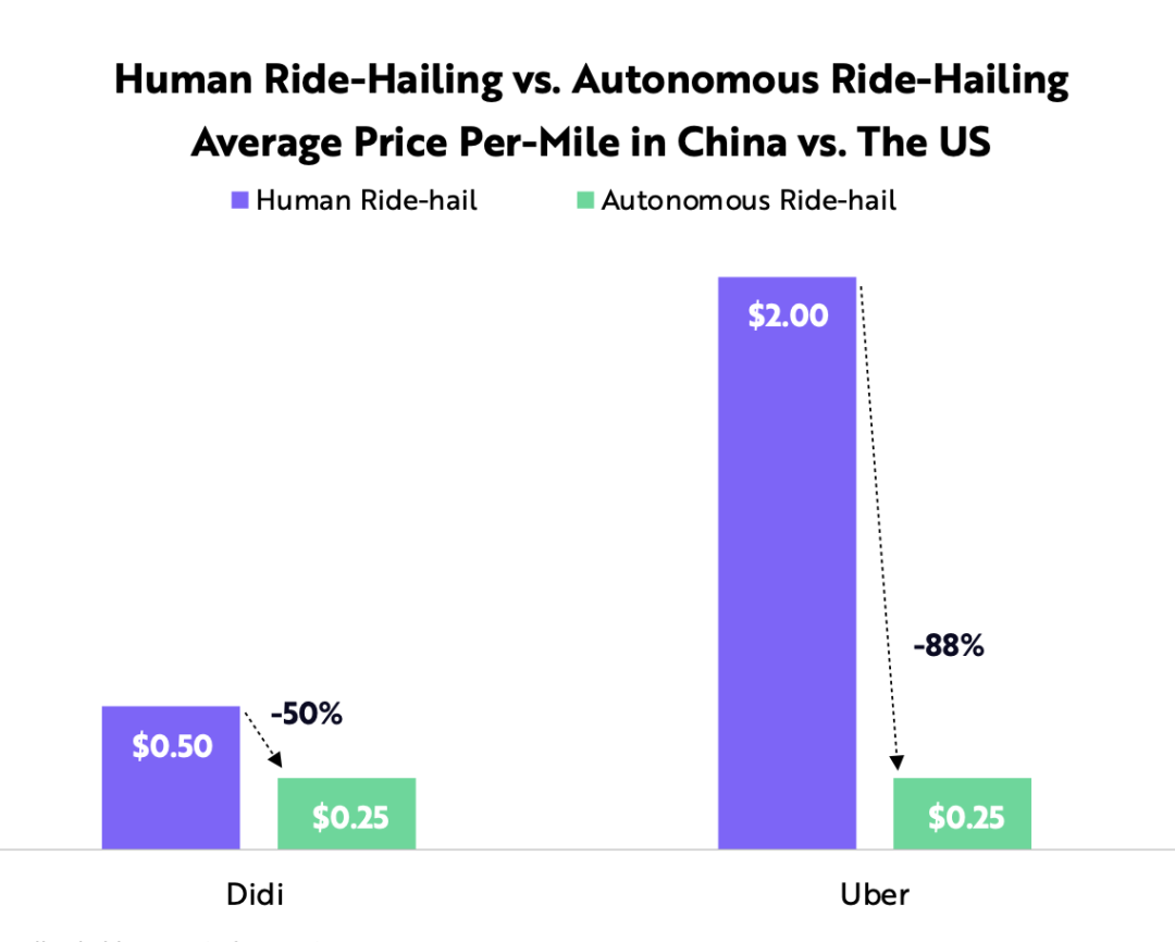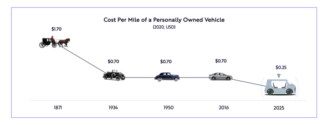 到2025年,自动驾驶出租车的成本将降低至每英里0.25美元(约合每公里1元人民币)