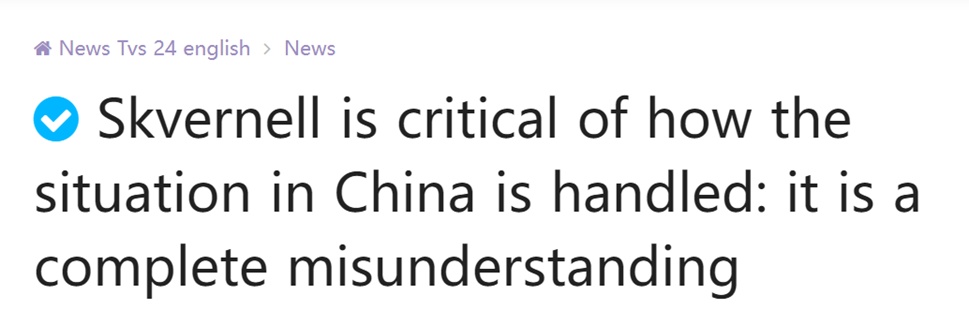 “News.tvs-24”网站报道称,斯克韦尔内利斯对现政府处理对华关系的方式持批评态度。他说,立陶宛现政府采取的措施加剧紧张局势,进一步损害了立陶宛的国家声望。当被问及如果自己掌权会如何处理这种情况时,斯克韦尔内利斯表示,他一开始就不会允许出现这种情况。