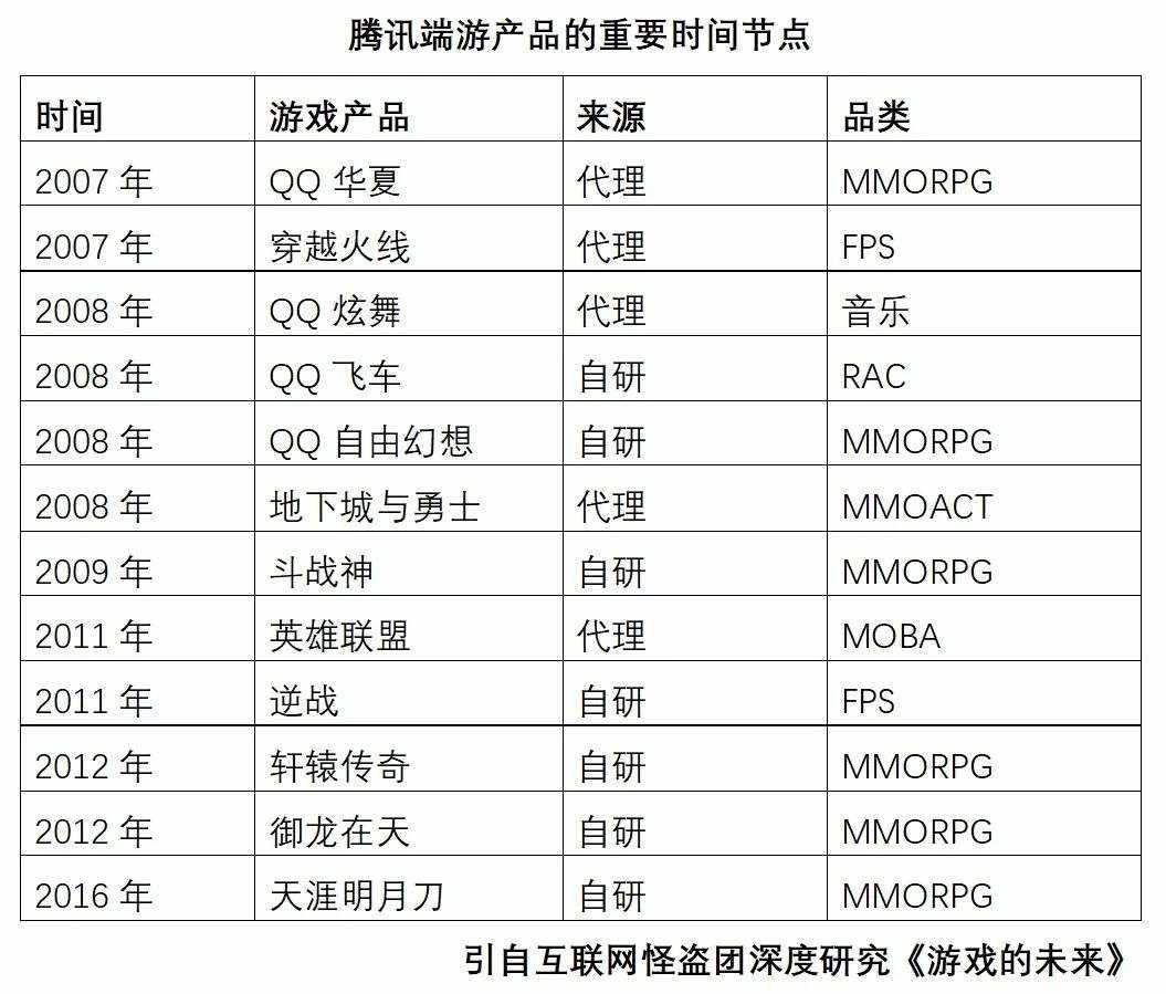 2007-08年,腾讯拿到了《穿越火线》《QQ炫舞》《地下城与勇士》三个爆款游戏的代理权,它们构成了所谓“腾讯四大名著”当中的三个。尤其是《地下城与勇士》相当成功,把腾讯从端游市场的第三名带到了第一名。在这个时期,腾讯的游戏运营还比较稚嫩,《地下城与勇士》甚至一度被玩家戏称为“掉线城与虚弱勇士”;腾讯通过反复的调整试错,提高自身的运营能力。与此同时,腾讯也拿出了《QQ飞车》《QQ自由幻想》等自研重度游戏,虽然模仿色彩极强,但毕竟是拿出来了。