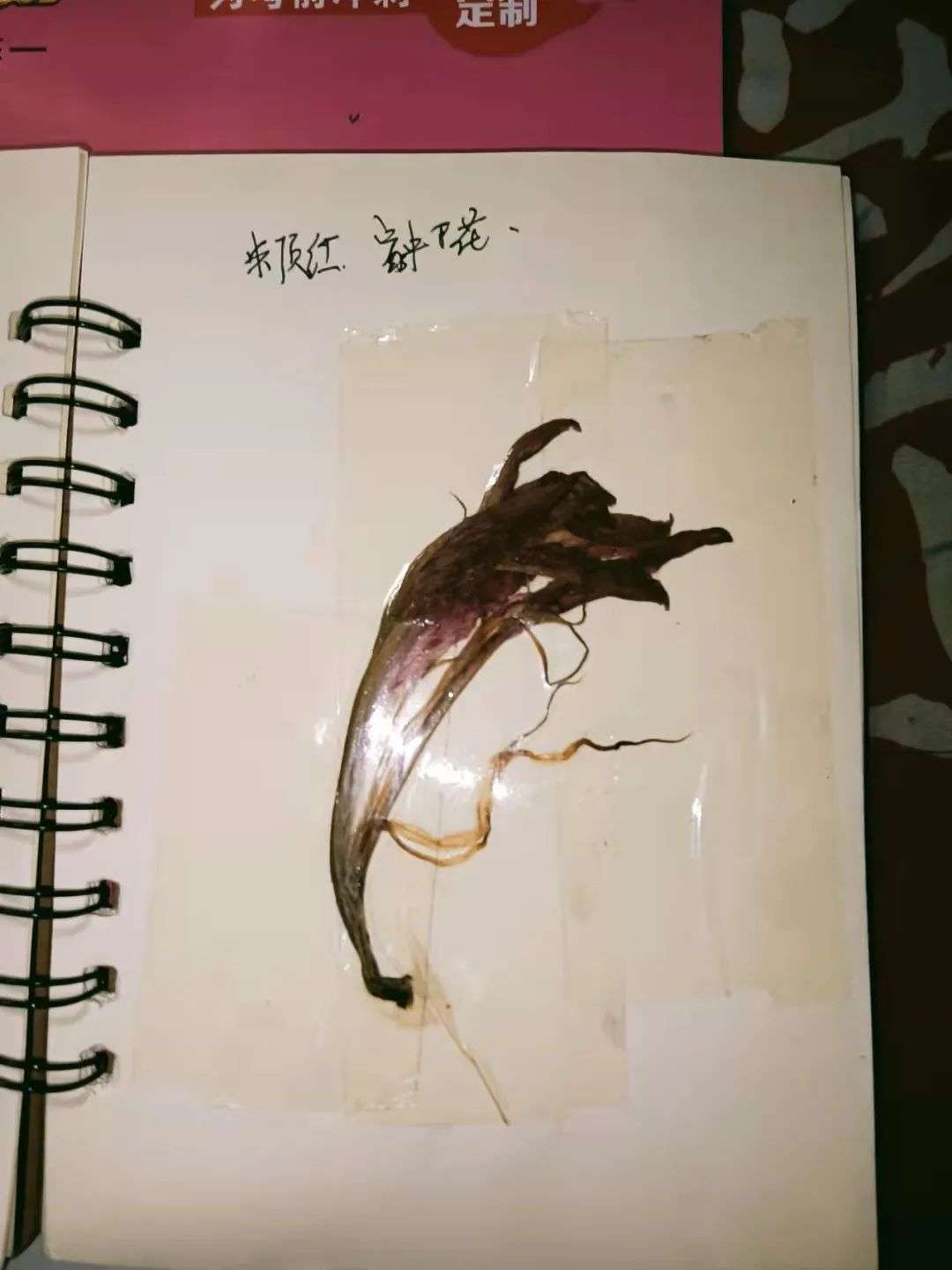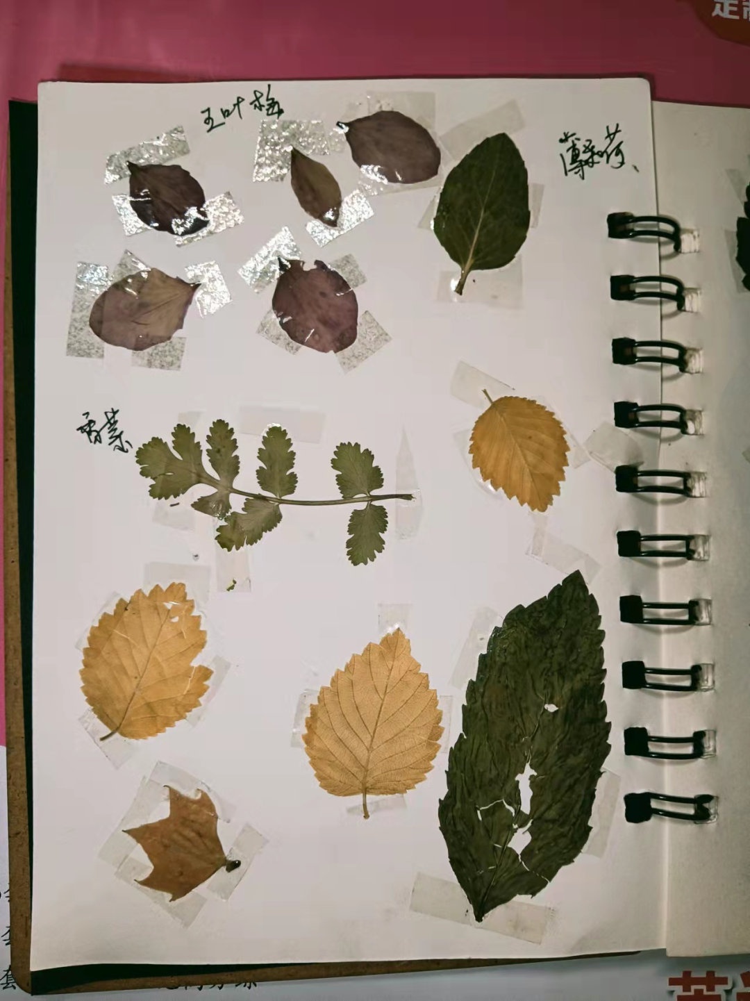左上角那五个一样的花瓣,我们这里的人叫五叶梅,特别好看。右上角那个是初中花池种的薄荷,还有中间横着的是香菜,当时可香可香了,现在经过几年岁月的沉淀,这股香菜味已经不知不觉中融入到了整个本子里。