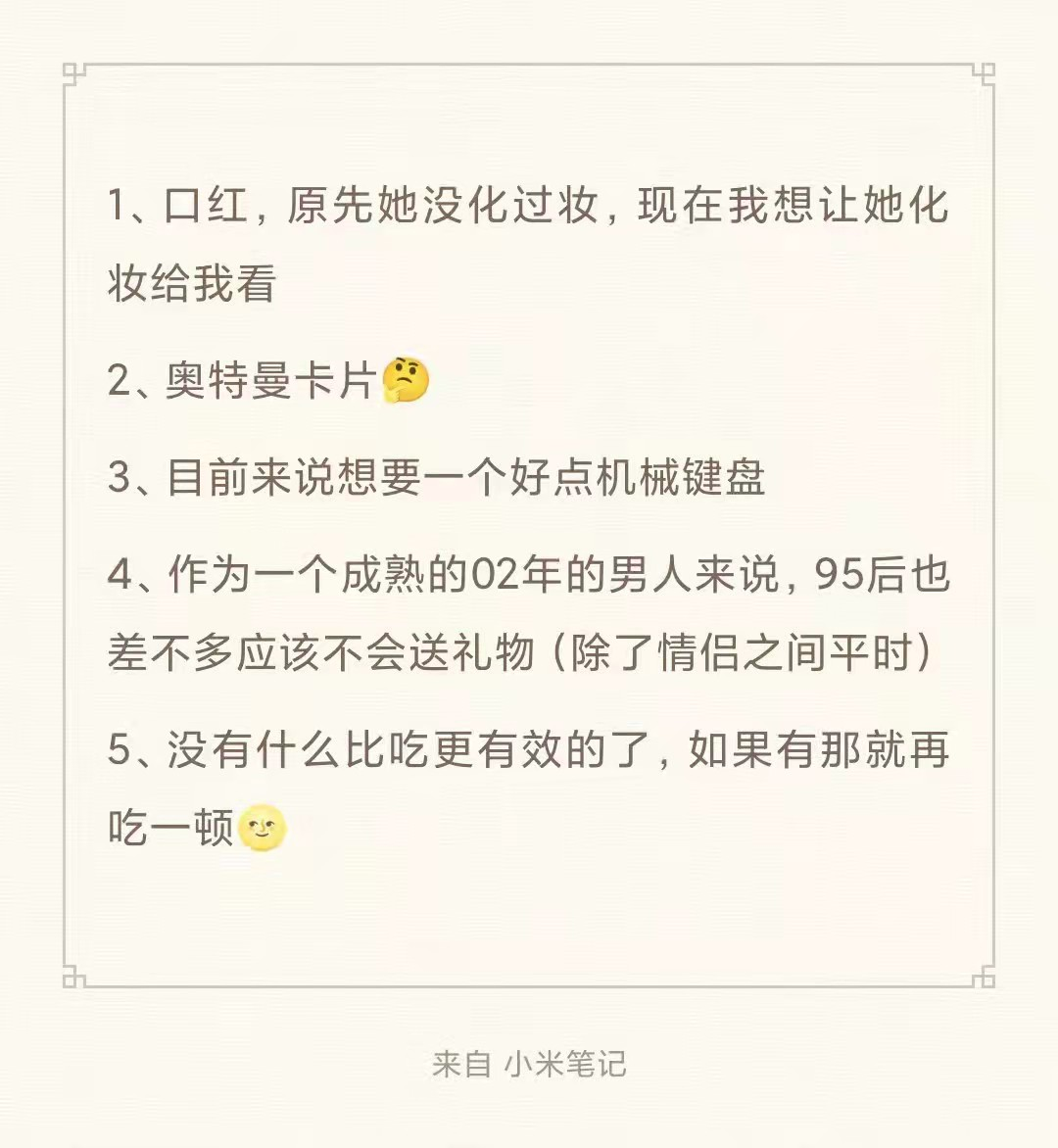 身边的同龄人对于仪式感这种好像并不太在乎,俗话说嘘寒问暖不如打笔巨款,感觉还是直接转账来的快乐。