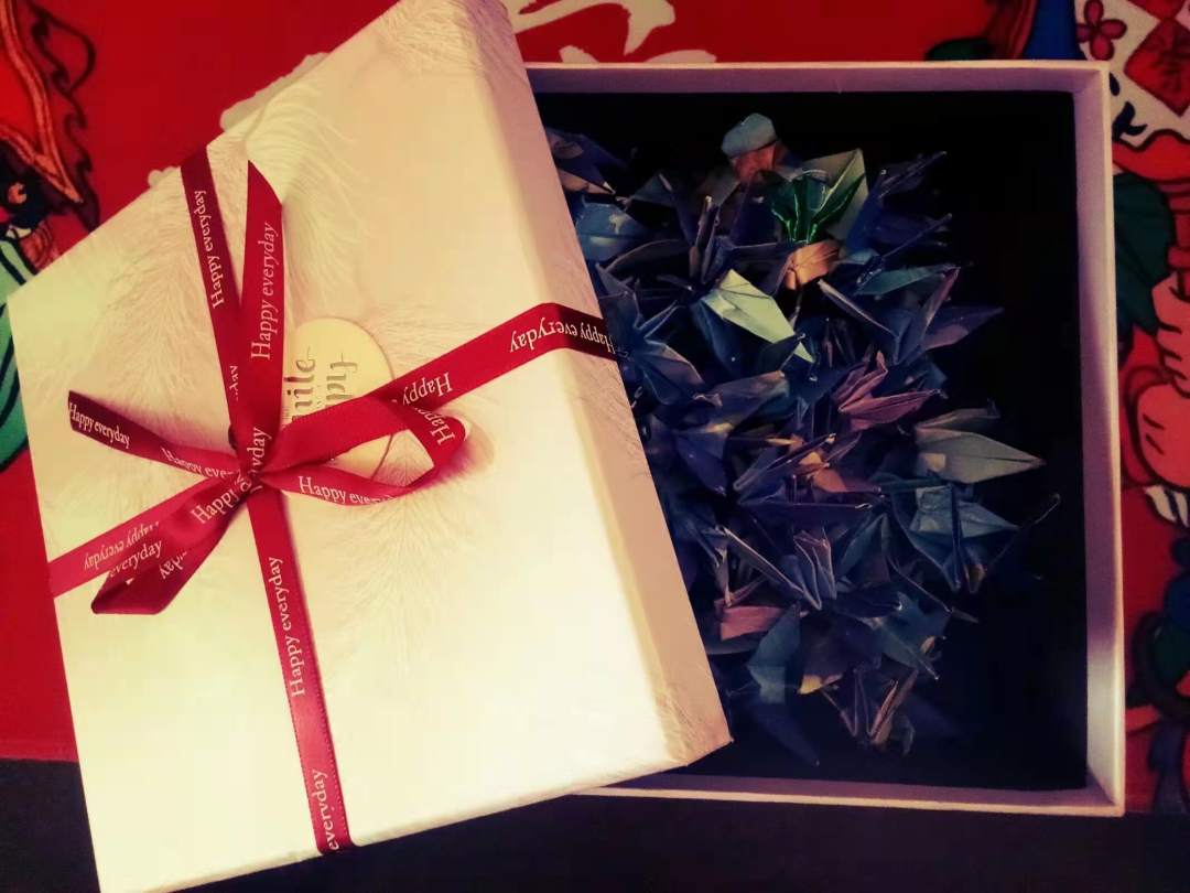 我初中就喜欢折千纸鹤,算是兴趣。那天是教师节,本来想给老师写信,但时间太紧,而且也买不到信封,我就从家里面拿了99个千纸鹤,塞到礼盒了,然后送给了英语老师。