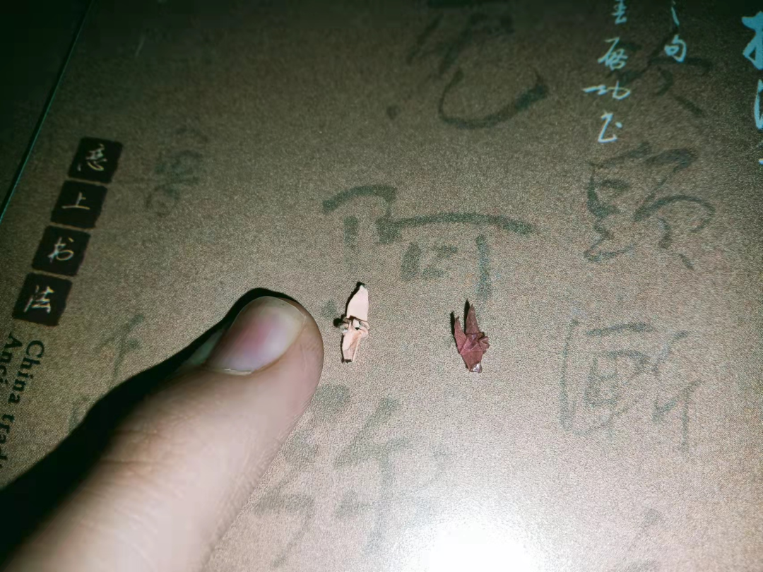正常大小千纸鹤一个,我也就用一分钟,但是这么小的我是用了一节晚自习50分钟。