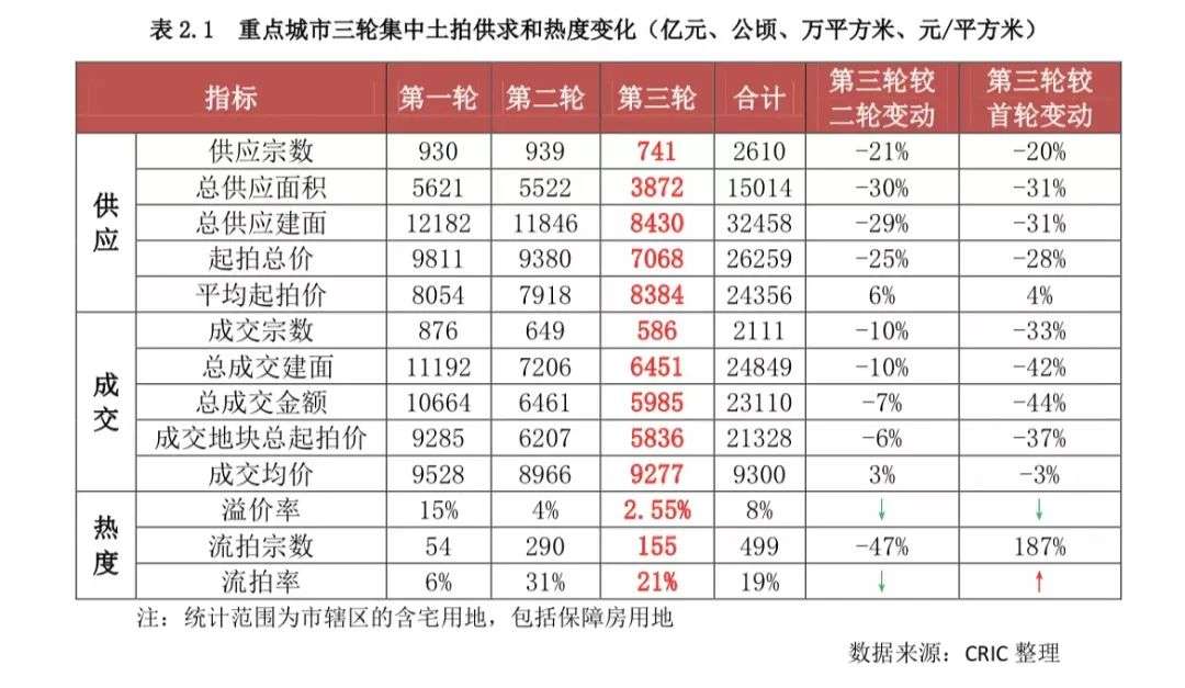 在第二批土拍中,除厦门外的21个城市,累计共有216宗地撤销出让、71宗地流拍,这些地块之中,共有12个城市近37宗出现二次流拍。撤销出让的地块均在第三轮集中供地时重新出让,除5宗地条件未变外,其余大部分地块出让条件均有一定程度的放松。