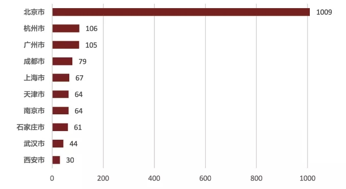 2017 年北京大学毕业生签约省会城市分布 图片来源:2017年北京大学毕业生就业质量年度报告