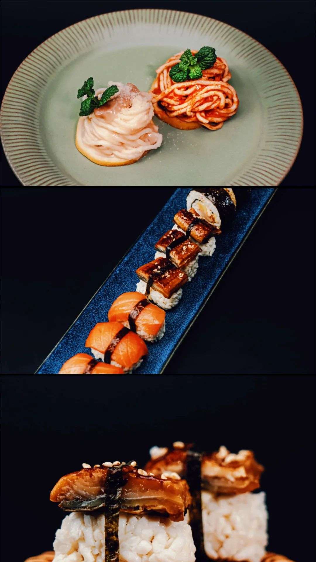 在图片中的主食料理中,寿司米是用鸡肉构成的,空心面是由牛肉构成的,米饭则是由鸡胸肉和菠菜构成的。这些食物经由专业营养师的精心营养配比,再通过最先进的3D打印技术形成各种形状,巧妙地将我们最日常的主食变得更有营养,更具创意。这些创意的食物来自于我们今天文章的主角——MOODLES。