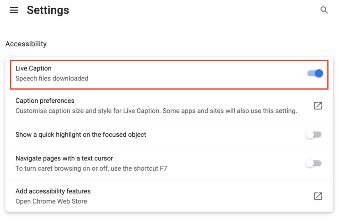 如果会议主持人可以提供录像的话当然非常方便。在网页上看时打开 Chrome,点选页面右上角的「更多」图示进入「设定」,然后依次点按左侧的「进阶」,在其中找到「无障碍设定」,开启「即时字幕」功能,配合 Video Speed Controller 插件控制视频播放速度,就可以很方便地查看会议回放。